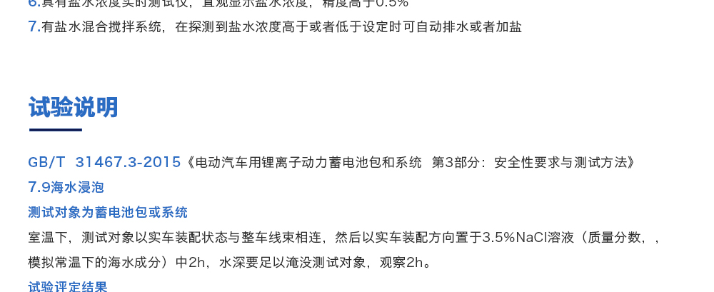 產(chǎn)品型號:JQ-6018 品牌:劍 喬 用途:海水浸泡試驗裝置主要用于電池以實車裝配狀態(tài)與整車線束相連然后以實車裝配方向在常溫下的海水成分中浸泡2h(海水為模擬海水成分,濃度為3.5%NaCl溶液)水槽中海水深度要足以淹咨詢熱線:13829135130